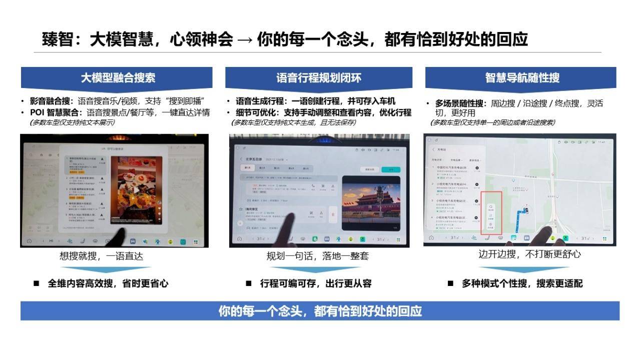 依托大模型能力,红旗HS6 PHEV的融合搜索功能在实用性上做了不少优化。例如,语音搜索音乐或视频时,系统可自动跳转至相应应用并直接播放;查找景点、餐厅等POI信息时,也能一键聚合视频介绍与导航选项,实现从“搜索”到“操作”的连贯体验。这背后的逻辑并不复杂,却贴近真实用车场景——将多个步骤简化为一句指令,减少操作分心,让搜索真正服务于高效出行。