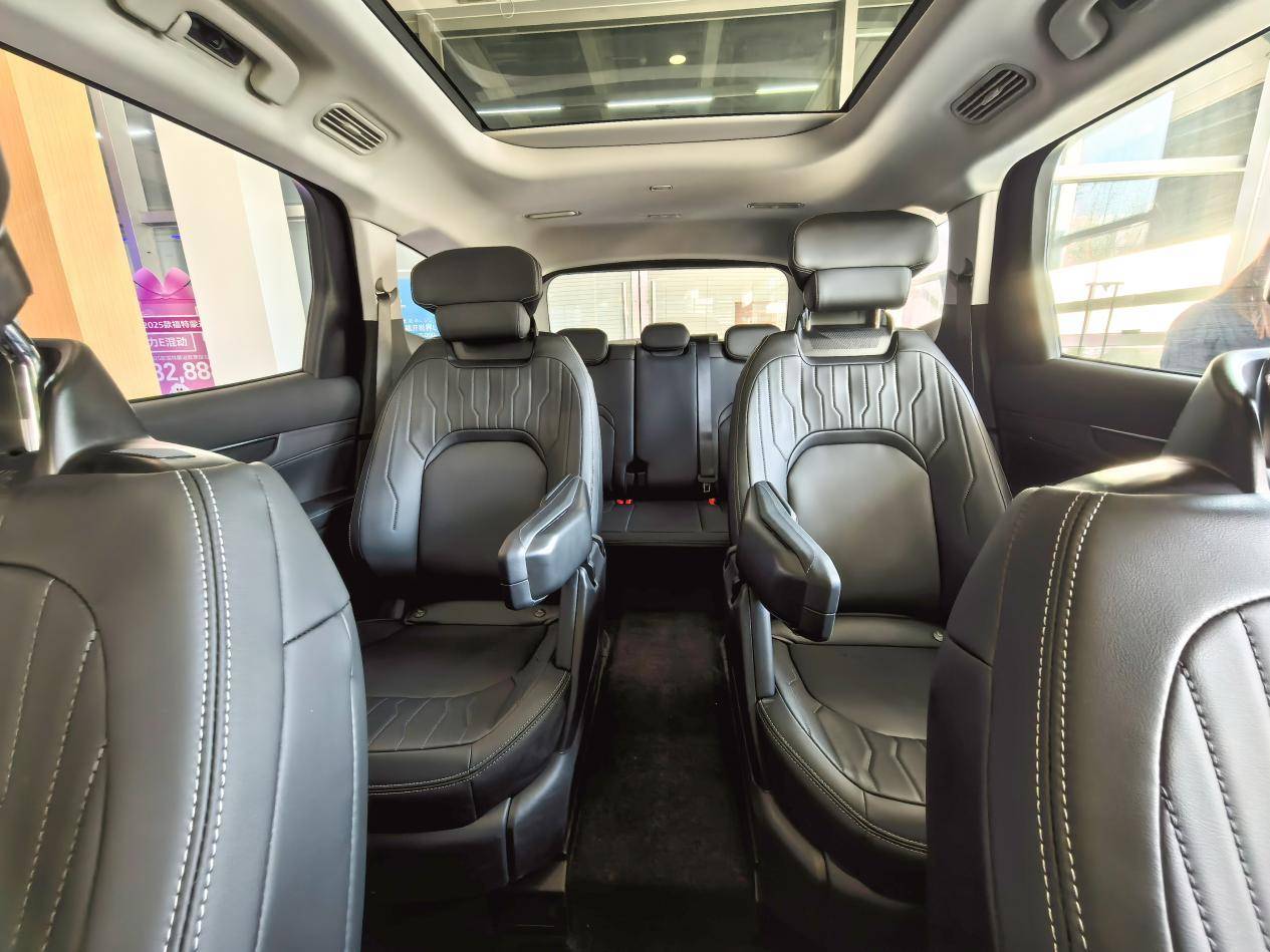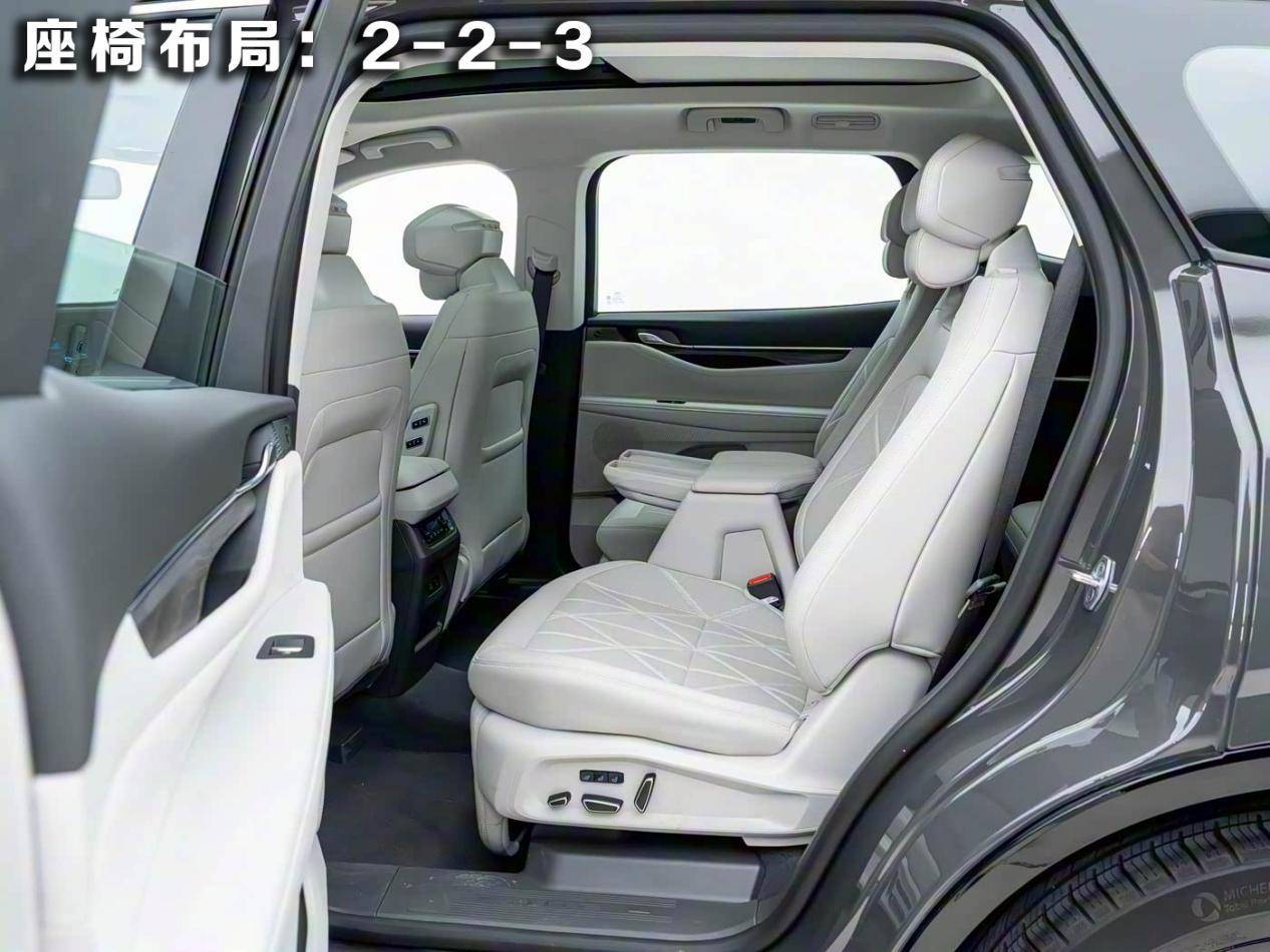 不过,笔者现在看的这款豪华型是2-2-3座椅布局。这种布局的优势在实际使用中尤为明显,平时一家三口或者四口出行,第三排可以收起来。春节全家出行,第二排两个独立座椅中间留有200mm宽的独立通道,老人和孩子进出第三排时也无需费力挪动座椅,直接从容通过,彻底告别了“爬进爬出”的尴尬。