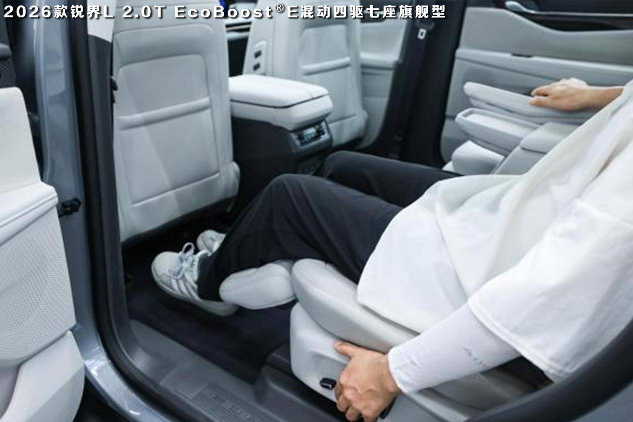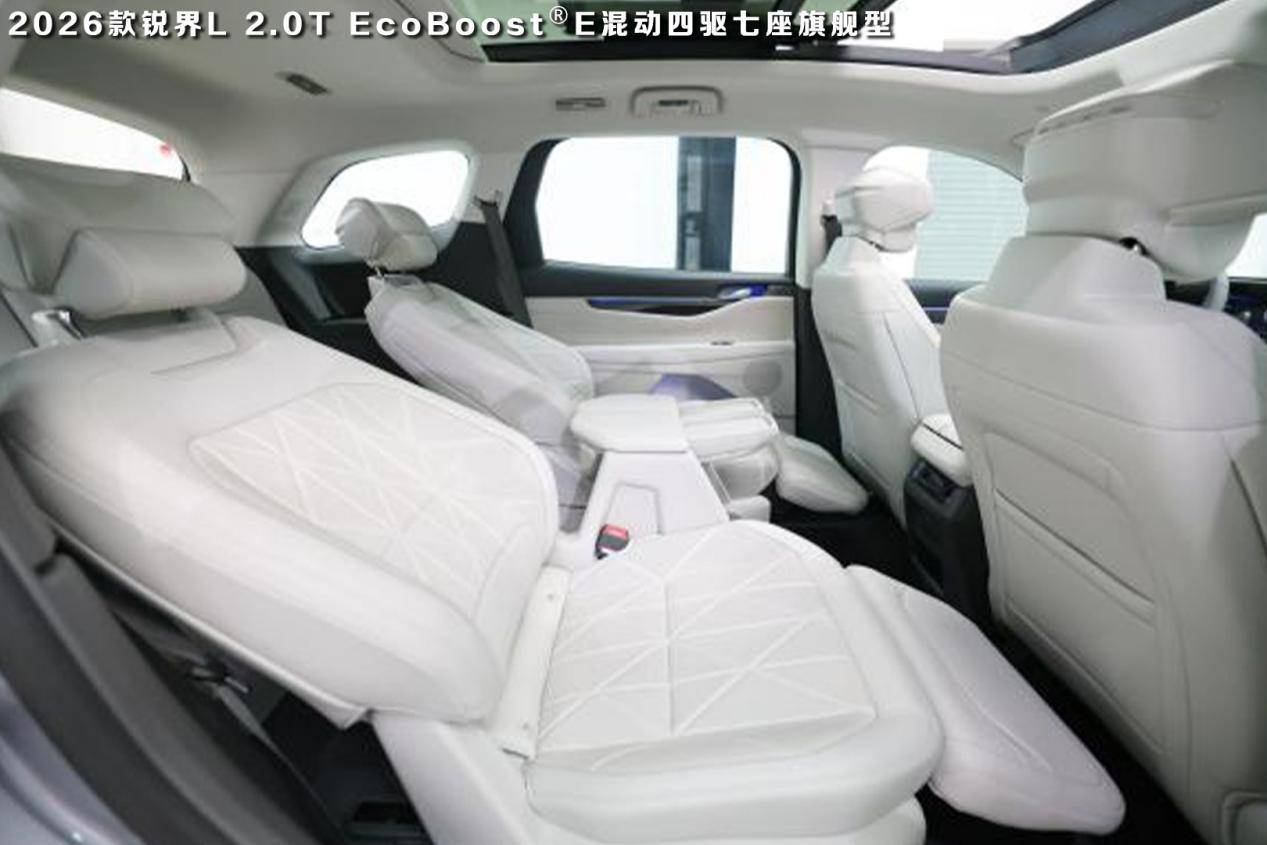 而且,2026款福特锐界L的二排座椅很舒适,靠背的包裹度和扶手位置设计的都很符合人体工程学,而且支持一键零重力模式,所以长途旅行也能很放松。