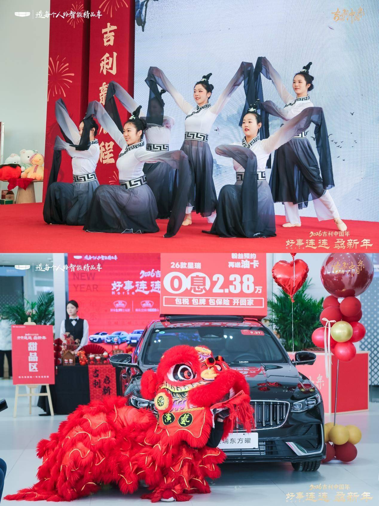 当传统新年的喜悦,与现代汽车科技的魅力相遇,当传统文化底蕴碰撞现代出行科技,一场充满年味与活力的开业盛典在石家庄长安园区精彩上演。1月3日,“吉利中国年 好事连连骉新年”河北众意吉利4S店开业庆典圆满启幕。吉利汽车相关领导、行业同仁、媒体挚友及车主粉丝齐聚一堂,通过非遗展演、古风互动、新车品鉴、福利派送等多元环节,共同见证这家全新4S店的华丽亮相,为河北区域消费者带来“福气满盈、服务贴心”的出行生活新体验。