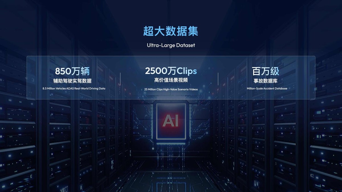 千里浩瀚G-ASD拥有的“超大数据集”。不仅拥有吉利旗下累计850万辆车的辅助驾驶和累计百亿智驾历程,行业领先的2500万clips模型数据片段,还具备行业第一的百万车辆事故安全数据。在全生命周期数据闭环系统下,“数据飞轮”将持续迭代进化,辅助驾驶系统“越开越聪明”。