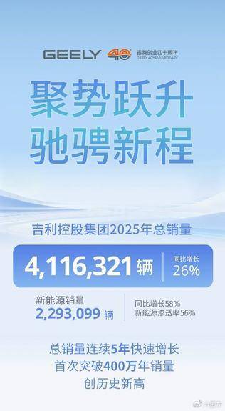 连续五年快速增长!吉利控股2025年总销量411.6万辆