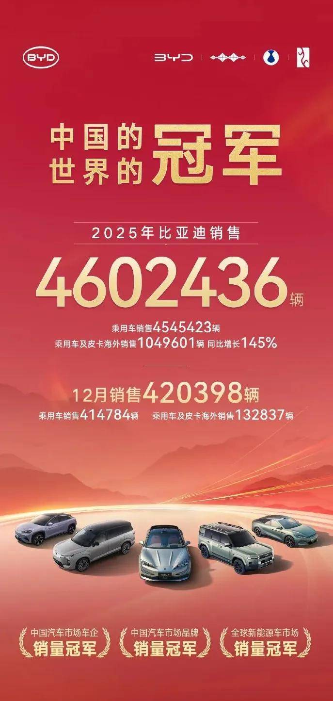 从新能源汽车总量领先到纯电赛道登顶,比亚迪的超越被视为中国汽车工业全球角色深化的关键节点。以体系化优势为依托,中国汽车品牌正持续推动全球汽车产业向电动化、智能化的全面转型,并将在下一段市场博弈下,率先赢下先机。