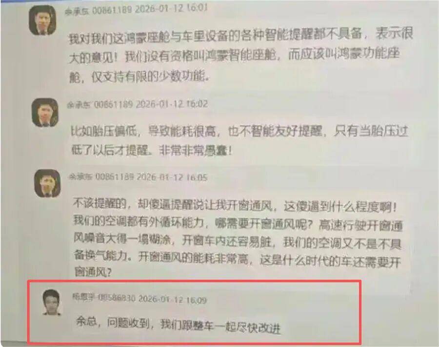 其实在我看来,这场“批评风波”最亮眼的地方,并非余承东的“狠话”而是华为团队的“快速响应”。聊天记录中我们可以看到,相关负责人紧随其后表态“问题收到,我们跟整车一起尽快改进”。这种“发现问题—立刻响应—着手解决”的闭环效率,正是华为产品主义的生动体现。