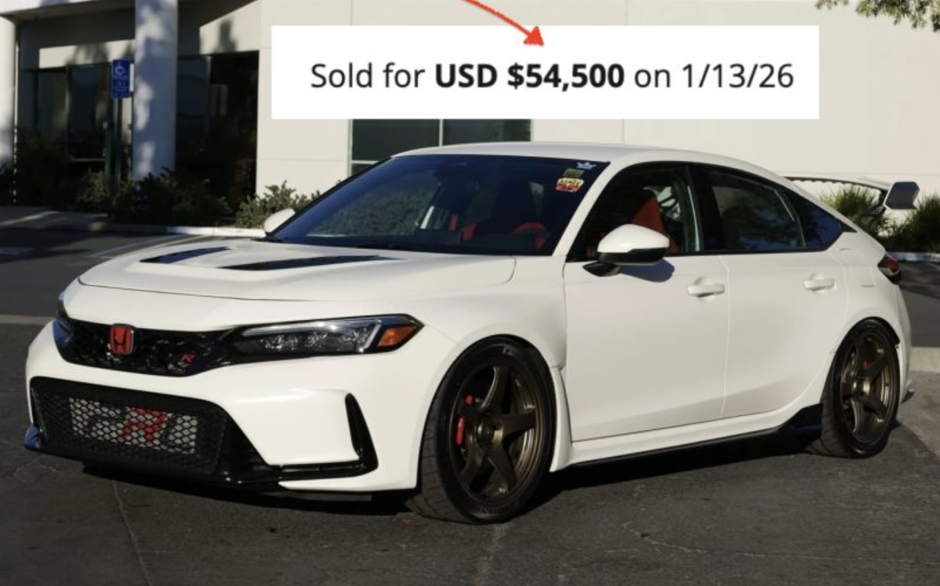 在汽车收藏界通常有一条不成文的规则:原厂未改装的车辆最具保值潜力,而大幅改装且高里程的二手车往往会大幅贬值。然而,近期在海外拍卖网站 Bring A Trailer 上,一辆2023年款本田思域(参数|询价)Type R(FL5)的成交结果却彻底打破了这一惯例,再次印证了当前全球市场对Type R车系的狂热追捧,甚至被日本媒体 Creative311 形容为“Type R泡沫”的极致体现。