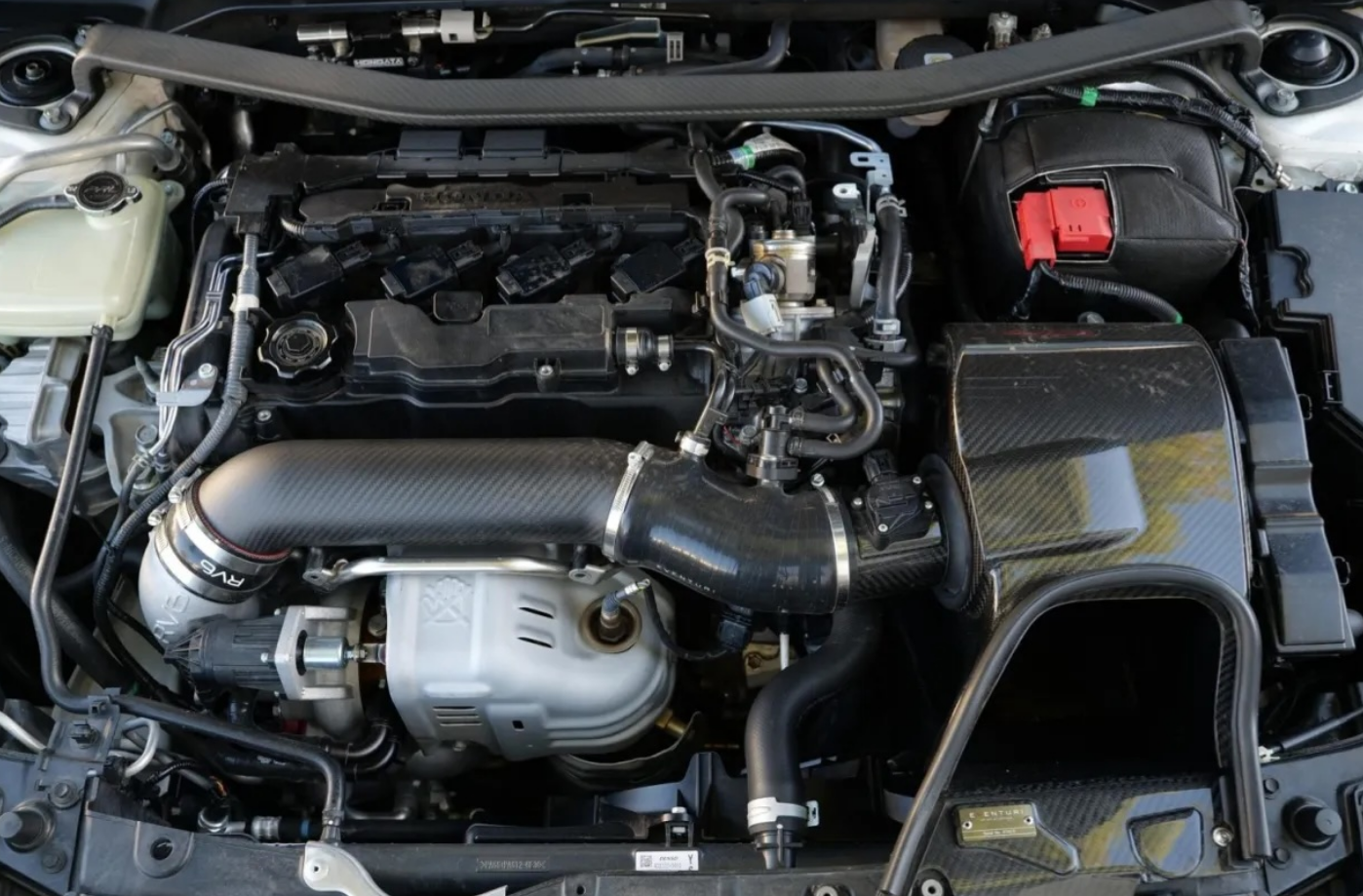这辆身价不菲的Type R在性能上进行了显著升级。其动力核心仍为2.0升直列四缸涡轮增压发动机,但通过更换4活塞赛车凸轮轴、加装Hondata供油电脑、Eventuri碳纤维进气系统以及强化版涡轮增压器,最大马力从原厂的300马力提升至341马力,峰值扭矩也从420牛·米增强至480牛·米。