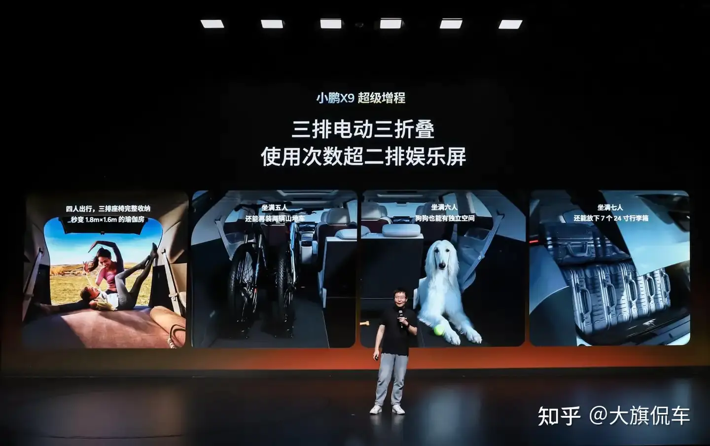 空间灵活性同样领先行业,小鹏 X9 超级增程满足用户丰富出行场景需求。全球首发的三排电动三折叠功能,随时化身可一键切换的“移动LOFT”。该车支持三排4/6分独立收纳,可无缝切换7座满员、6座带宠物、5座载自行车、4座露营大床房等多元模式,真正实现一车搞定通勤、带娃、社交、远行多种出行场景。