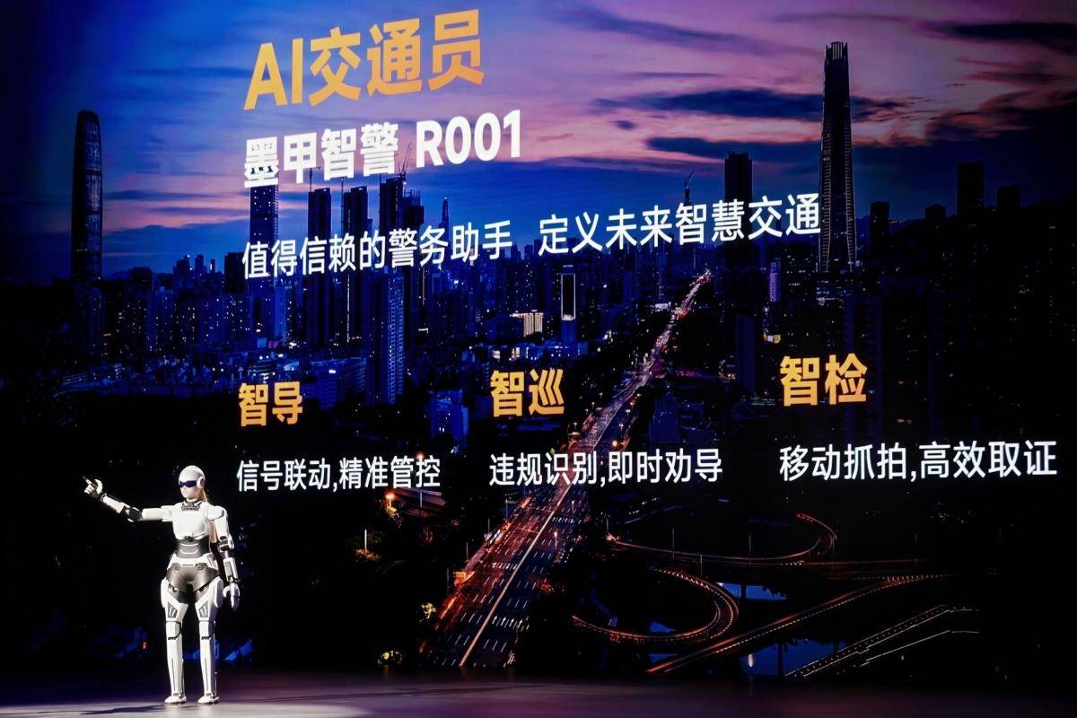 活动现场,奇瑞001号AI员工墨茵担当开场主持人,与尹同跃董事长创新联动。墨茵作为全球首款通过欧盟软硬件双重CE认证的人形机器人,已成功进入全球30多个国家和地区,广泛应用于覆盖工厂巡检、展厅服务等多达100多个场景。自2025年4月开启首批全球交付以来,墨茵先后完成印尼雅加达国际车展(GIIAS 2025)印尼语讲解车型、迪拜亚青残运会国际综合性体育赛事机器人颁奖等国际化场景应用。近日,墨甲首款交警机器人在安徽芜湖正式上岗,凭借前沿的科技应用,为芜湖城市交通管理注入了新活力。