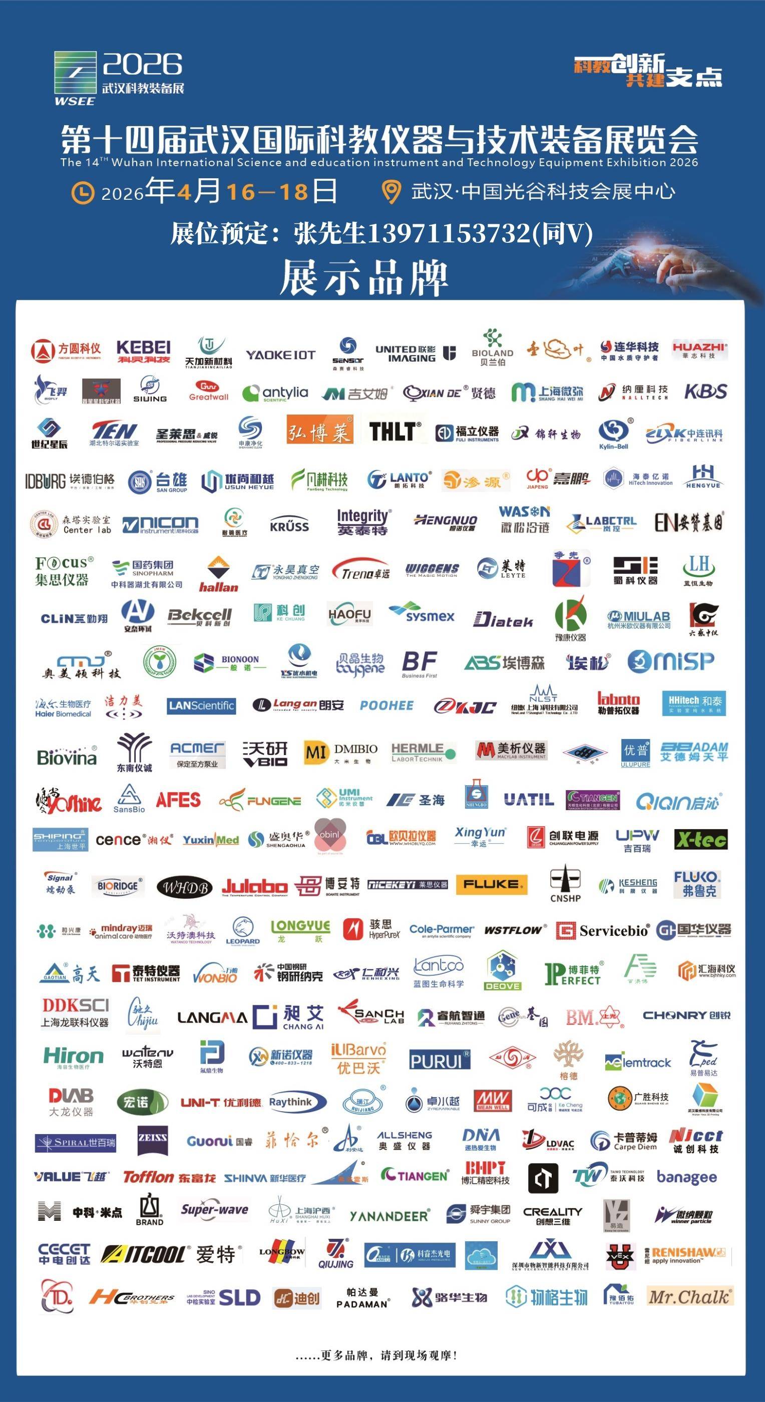 最新展示品牌1.20/2026武汉科教仪器及实验室装备展会