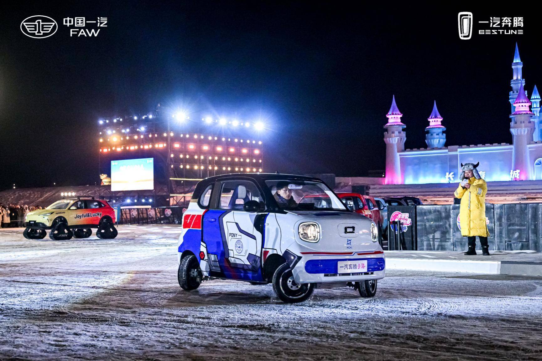 活动现场氛围火热,近千名各地嘉宾齐聚肆季南河,共赴冰雪与汽车交融盛宴。一汽奔腾三款改装车动感登场,一汽奔腾小马“蟹行版”秀出横向行驶、神龙摆尾、原地360度旋转等操作,尽显萌趣与灵活;一汽奔腾悦意03与悦意07“履带版”同步联动,在冰雪弯道灵活驰骋、稳健过弯,流畅操控、扎实底盘与澎湃动力彰显大厂品质。