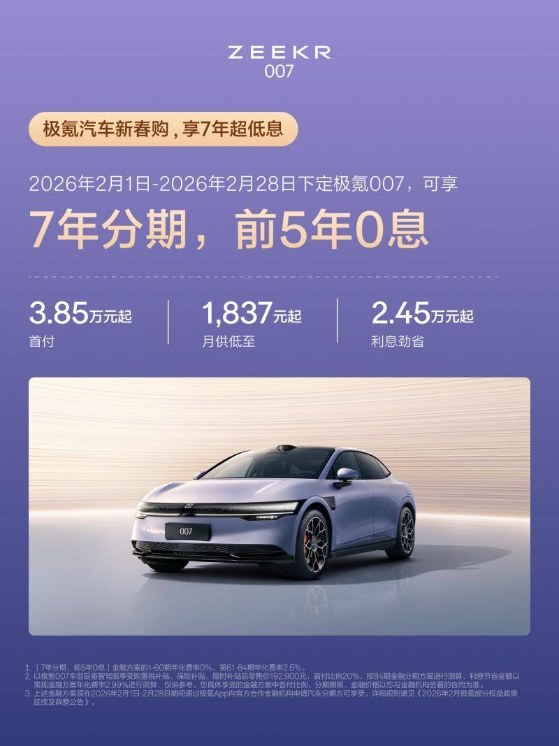 极氪推“新春购”政策:7年超低息、5年0息,首付3.918万007GT开回家