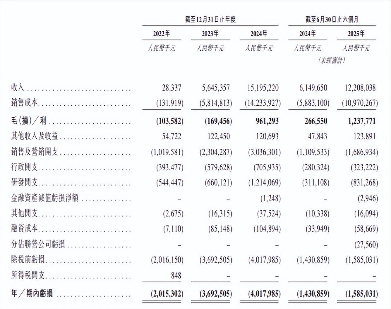 招股书显示,2022-2024年,阿维塔的营收分别为2833.7万元、56.45亿元、151.95亿元,期内亏损分别为20.15亿元、36.93亿元、40.18亿元。