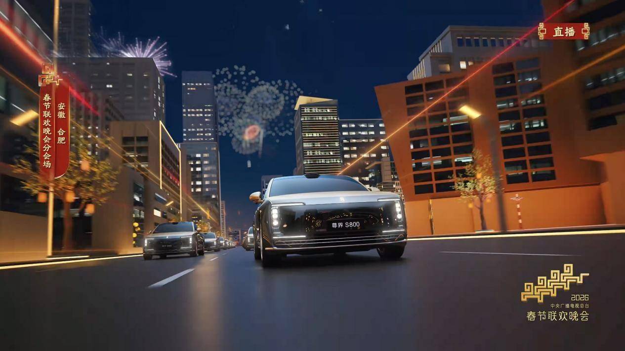 说起尊界和春晚的缘分,其实2025年就已经埋下伏笔了。那时候尊界刚出来,第一次在春晚上露脸;没想到才过了一年,它就直接跻身春晚“主角”行列——上百辆尊界S800在合肥搞了一场超震撼的灯光秀,还特意配上了马年专属的“一马当先”灯语,氛围感直接拉满。除此之外,央视主会场里,尊界S800还负责接送明星嘉宾,成了他们专属的“移动座驾”。