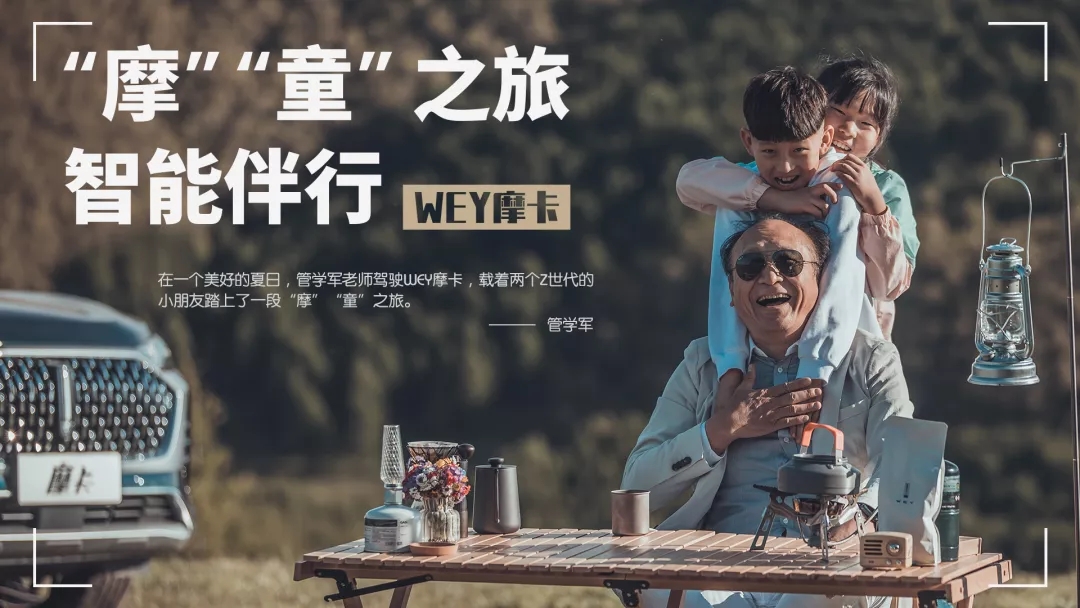 在一个美好的夏日,年过六旬的管学军老师驾驶WEY摩卡,载着两个Z世代的小朋友踏上了一段“摩”“童”之旅。