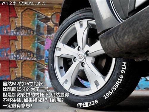 哈弗M2的外形尺寸为4011mm*1744mm*1720mm,它加装了厚实的外观套件,配合新改型的大灯,看上去似乎在憨厚俏皮中还带着一些生猛的味道,侧面更加向外突出的轮拱也在有意加强着Cross的视觉效果,尾灯与酷熊的造型也不同,在加了新设计的灯罩之后,风格与整个车身更加统一。M2的全系车型标配了宽度为195mm的轮胎,这在小型车中还是具有一定优势的,不过如果换成尺寸更大的轮胎视觉效果会更棒。