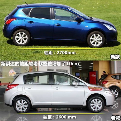 从外观上看上去,车身尺寸的增加甚至可以用肉眼观察出来,尤其是降低的车身高度让车身显得更加修长。值得一提的是,新骐达的轴距尺寸较老款增加了整整1厘米,从而在A级车中的后排空间占据着明显的优势。