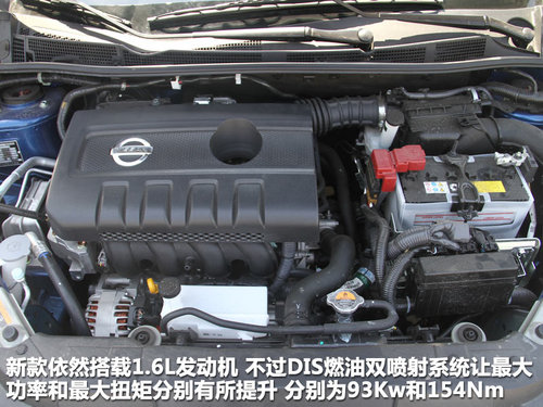 新骐达采用的是和老款相同型号的发动机,不过新增加了DSI燃油双喷射系统,简单来说就是通过双喷嘴将燃油喷射出去减少60%的油滴直径,以提高油气混合效果,除了燃油经济性提高外,成本要比燃油直喷系统的成本少60%。另外,新款骐达还增加CVT变速器,很好的保证了换挡平顺性。