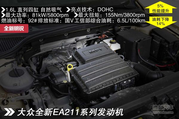 新明锐:四款中唯一一个采用了涡轮增压技术的车型,采用来自大众的EA211 1.6L自然吸气发动机,以及1.4T涡轮增压发动机,最大功率分别为81kW和110kW,最大扭矩分别为155Nm和250Nm。传动系统方面,与1.6L发动机搭配的有5速手动变速箱及6速手自一体变速箱,而1.4T车型除了一款手动车型外,其余的均搭载7速DSG变速箱。而之前1.8T和2.0L的车型将被取消。