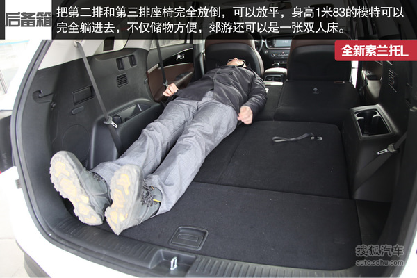 在舒适性上,索兰托L与新汉兰达第二排座椅都可以前后移动,保证第二排和第三排乘客一定的乘坐空间,同时两车第二排座椅靠背角度也可以调整,保证长途行驶后排乘客的舒适性。索兰托L第三排座椅要更厚实一些,新汉兰达第三排座椅略显单薄。两款车型后两排座椅都可以放倒放平,形成一张宽大而平整的“床”,对于大件行李(如滑雪板)的运输是十分有利的。两车除了高配车型配备电动尾门外,新汉兰达还有一个独特的招数,就是后门窗可以独立打开,这样也保证了在狭小空间取物的便利性。