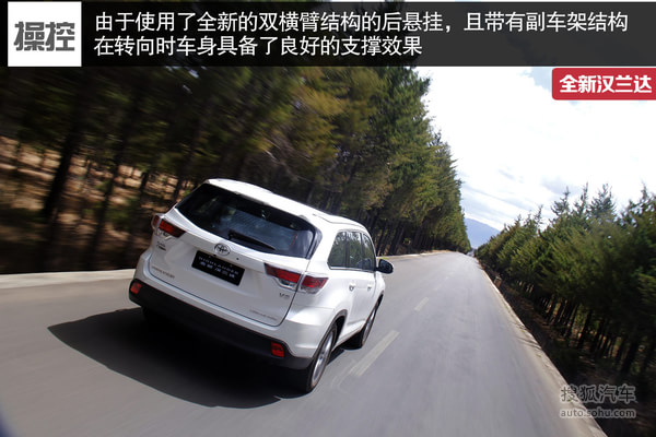 为了能够实现更好的舒适性,新汉兰达的悬架系统成为了改革的又一项重点。新一代车型使用了全新的双横臂结构的后悬挂,能够确保转向时车身具备了良好的支撑效果。这套悬架调校上更为紧凑,也是与老款产品有着截然不同表现的关键所在。日常行驶情况下,车身的稳定性自然能够得到良好的保证,依旧能够让你感觉到来自丰田的舒适性。一旦面对山路的颠簸之时,悬挂的阻尼却也能够抵御来自路面上侵扰,令整体的平整度大幅度提升。