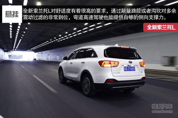 索兰托L的底盘舒适性和操控性是最令人印象深刻的,多连杆后独立悬挂带给我们理想的驾控感受,在绕桩测试、山路驾驶、高速弯道行驶,全新索兰托L的身姿都非常矫健,动作干脆利索,侧向支撑力充足,完全没有笨拙懒散的感觉,同时,在通过颠簸路段时,索兰托L给予接近美系车的舒适,不会有多余的震动传入车内。