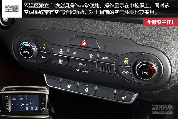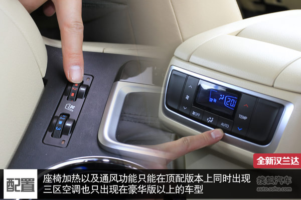 内饰配置方面,两款车都配备了定速巡航、真皮座椅、主驾驶电动调节、前排座椅加热、第二排座椅前后移动与靠背角度调节、GPS导航、中控大屏、车载蓝牙、双区独立自动空调、后排出风口。索兰托L多出的配置有方向盘加热、自动防眩目后视镜,新汉兰达则多了副驾驶电动调节座椅、后排独立空调、发动机自动启停、人机交互系统。