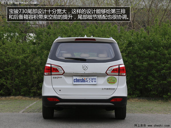 宽大的车尾看上去很硬朗,尾灯采用C型样式设计,并且还配有光带元素,夜间效果更加明显。车顶行李架对于日常出行更加便利。尾部尾翼设计很夸张,在尾部起到了点缀的作用。宝骏730不仅配有倒车雷达,还配有倒车影像,能够给驾驶不熟练的驾驶者提供便利。