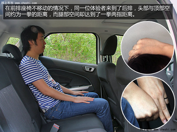 体验者身高175cm,将前排座椅调整到最低,头部与顶部约一拳两指,而腿部空间也非常富裕。在前排座椅不移动的情况下,同一位体验者来到了后排,头部与顶部空间约为一拳的距离,而腿部空间却达到了一拳两指距离,后备箱空间大小不错,并且车厢内整体较为平整,方便物品的存放。再者,后排座椅可以折叠,进一步的扩大后备箱的储物能力。