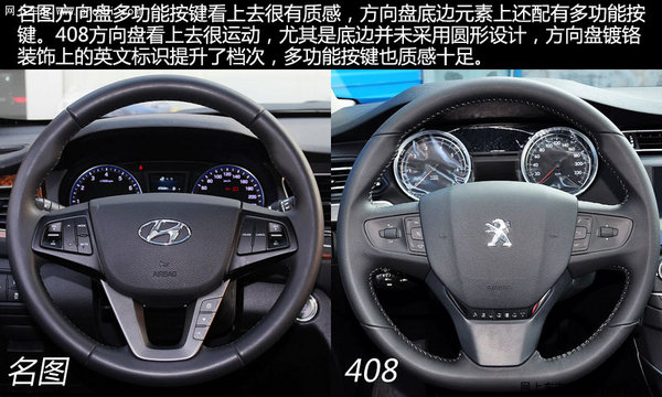 两款车在动力方面表现也很出色,都采用了相同排量的1.8L自然吸气发动机,变速箱也都是6速手自一体,其中名图前悬架为麦弗逊式独立悬架,后悬架为多连杆独立悬架,转向助力类型为机械液压助力。408前悬架为麦弗逊式独立悬架+横向稳定杆,后悬架为扭力梁式非独立悬架,而转向助力类型为电动助力,同时发动机还配有启停技术,在停车等候红绿灯的时候能够降低一定的燃油经济性。