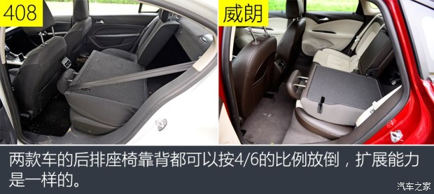 后备厢的储物空间方面,408的内部空间更为规整,但开口高度要比威朗高出110mm,在日常放入和拿取大尺寸行李箱时,威朗的表现要更为轻松一些。后备厢盖开启方式上,408可以通过车外的开关打开,而威朗则没有这样的设计。在这项对比中,两款车各有优势,属于平分秋色。