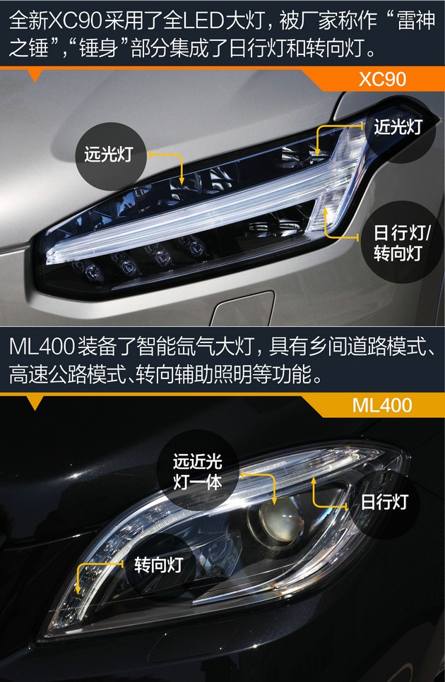 ●外观:全新XC90采用北欧豪华设计 ML400更显硬派