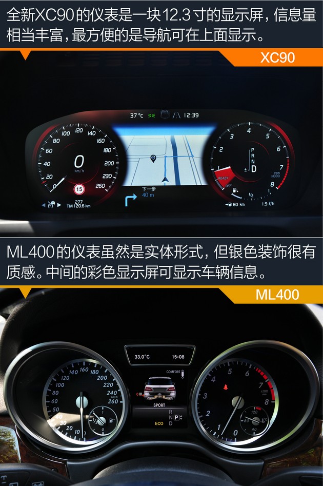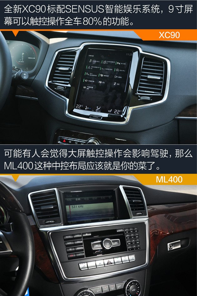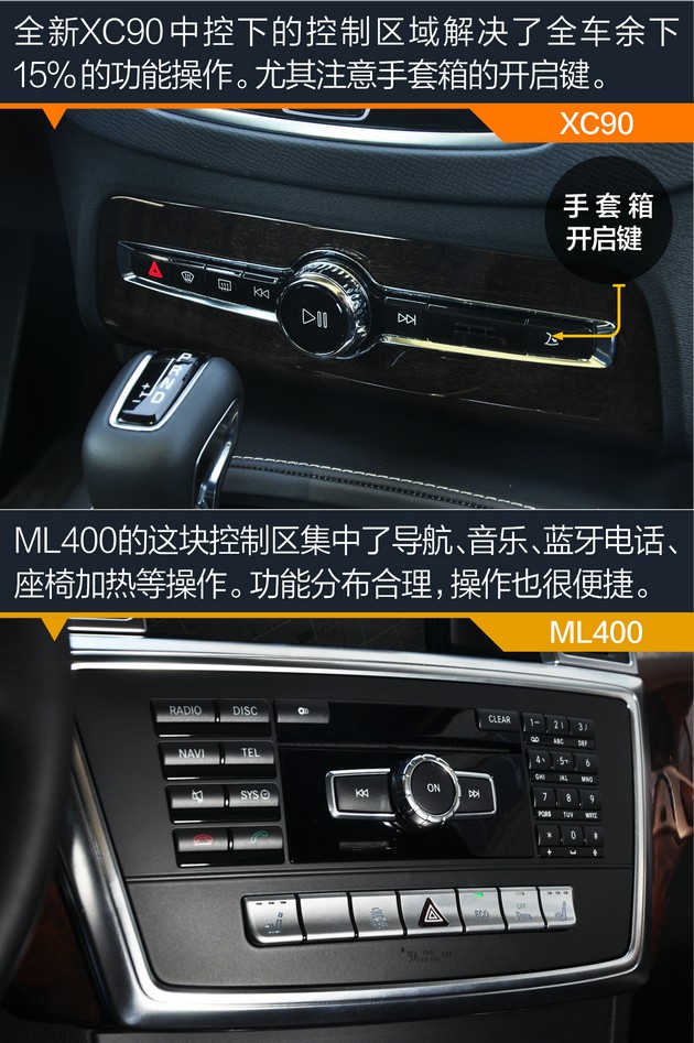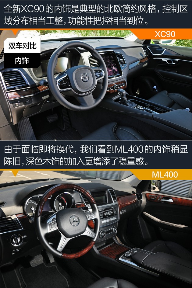●内饰:全新XC90代表北欧简约派 ML400则稳重大气