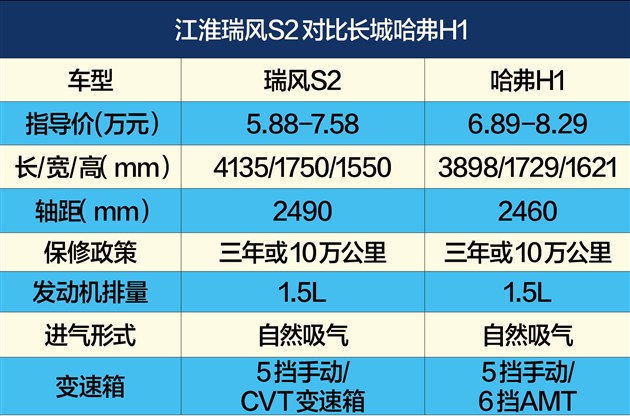 从上述表格不难看出,瑞风S2的车身尺寸要明显优于哈弗H1,更加充裕的空间表现,可能将是影响消费者购车的决定性因素。动力方面,两车都搭载了1.5L的自然吸气发动机,而S2自动挡车型所采用的CVT变速箱对于这个级别的车型而言,算得上较为罕有的配置了。