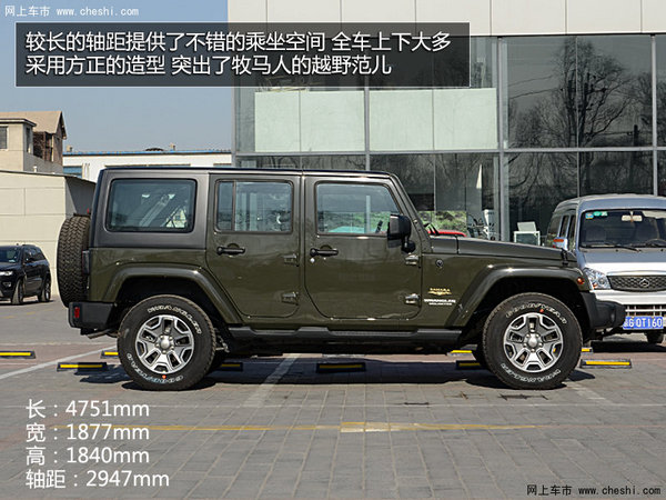 普拉多的车侧缺少了侧腰线拉花单调了许多,整体设计没有发生变化,最小离地间隙220mm,涉水深度700mm。而牧马人在外观方面,新增加的颜色可以为消费者提供更好的选择,经典的家族式设计,方正且刚硬的车身轮廓突出了牧马人越野的范儿,全车采用诸多的方形元素,这不仅使它看起来硬朗,也进一步突出了Jeep造车的精髓所在。