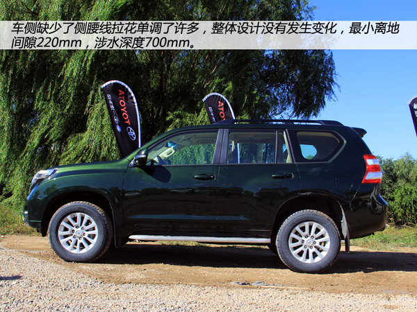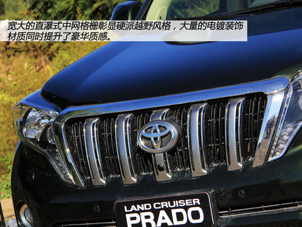 国产普拉多3.5L车型在外观上与进口版基本保持一致,最大程度的保证了该车型的原汁原味引入。粗壮的五幅式中网尺寸硕大,两侧与机盖上的饰条采用镀铬处理,蛮横程度绝对爆棚,硬派SUV就应该这样子。