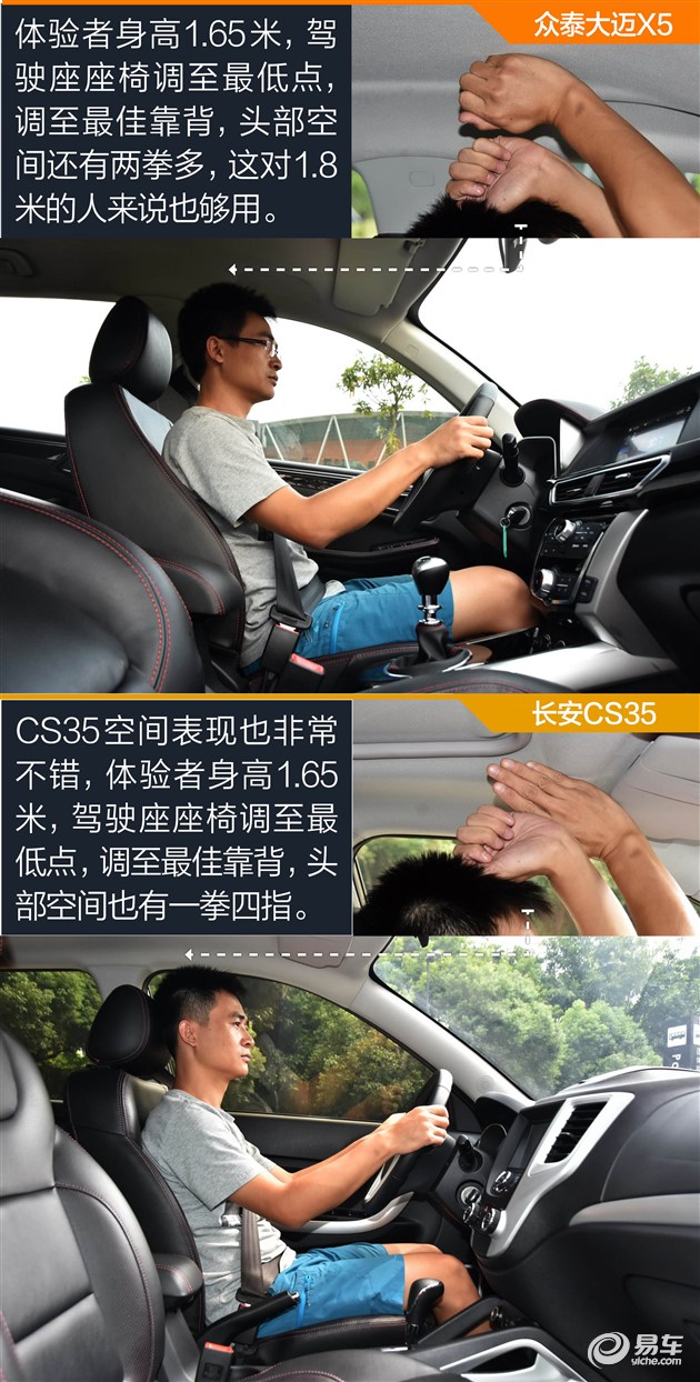 空间小结:虽然大迈X5在车身长度和轴距尺寸上都要比CS35大,不过两车车内乘坐空间却相当,不存在太明显的差别。车内储物空间方面,大迈X5两个车门侧储物格空间要比CS35丰富,并且其后备厢空间也要更有优势。
