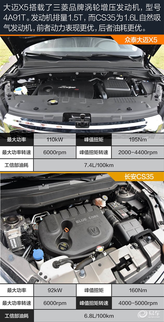 全文总结:我们可以发现大迈X5身上很多的闪光点:更大的车身尺寸、LED日间行车灯、电子手刹、自动驻车以及三菱涡轮增压发动机等,这些都是大迈X5超越竞争对手的利器;相对地,CS35定速巡航、"In-Call"车载系统以及更加成熟的售后网络等,也是大迈X5无法比拟的。如果你想更省心,CS35是个好选择,并且CS35目前优惠较大,性价比较高;如果你更看重配置和个性,大迈X5也是个不错的选择。