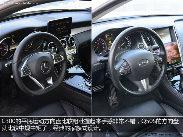 豪华运动中级车对比 奔驰C300对Q50S混动