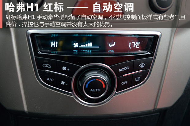 内饰配置两者就差得有些多了,譬如哈弗H1 红标配备了GPS导航系统,但在如今手机导航如此便利的时代,个人认为不如电动天窗来得实在。此外针对座椅,我还是更喜欢织物座椅,毕竟一款没有配备电动加热以及电动通风的皮革座椅,最终的命运都是要被加上座套,夏季凉席、冬季绒套,毕竟皮革座椅实在是夏天闷热冬天冰凉。而空调控制方式,个人觉得6万元左右的车型手动空调与自动空调其实并没有太大差距。