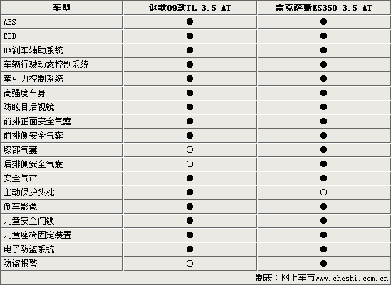 讴歌09款TL和雷克萨斯ES350都属于豪华B级这个级别,所以它们在安全配置方面都比较全面。ABS、EBD、刹车辅助系统BA,以及车身稳定系统和六安全气囊都成为了他们的标准配置。这两款车型在配备倒车雷达的同时又都配备了倒车影像系统,可以有效减少倒车时的刮蹭事故。但是仔细看下来雷克萨斯ES350还提供了后排侧气囊和前排膝部气囊,在发生碰撞事故时更好的保护前后排乘客安全。同时ES350还配备了防盗报警器。