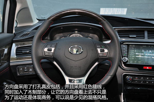 外观上的风格改变很大,但LED的增加也算不上什么太大的升级,转而看看内饰,我认为这才算真正的升级。进入车内首先眼帘的就是充满运动感的红色缝线,同时木质纹理也在其中大面积采用,亚光镀铬饰条也充斥着内饰之中,你说不好C50到底是要塑造运动风格还是商务风格,有些凌乱。不过升级给我印象最深的也许就是那个尺寸给力的触摸液晶屏了。