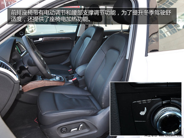 [page]前排座椅带有电动调节和腰部支撑调节功能,而且为了能提升冬季驾驶的舒适度,Q5还提供了座椅电加热功能。