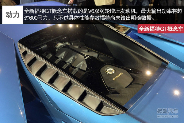 动力方面,现阶段我们仅知道福特GT概念车将搭载一款V6双涡轮增压发动机,最大输出功率将超过600马力,其他信息官方尚未给出明确数据。