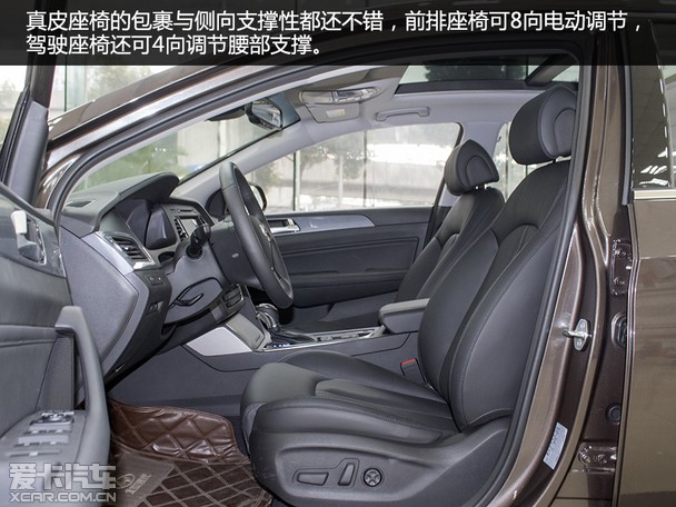 [page]第九代索纳塔 的真皮座椅填充物软硬适中,且可以提供不错的支撑与包裹效果。得益于车身尺寸的增加,第九代索纳塔在乘坐空间方面的表现也算出色。另外储物空间方面,常规的储物格都一并俱全,不过前后车门上的储物格储物能力较差,只能放入一瓶矿泉水及部分小件物品。