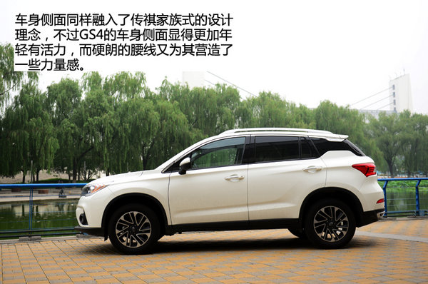 车头方面可以看出是经过设计师精心设计的,通过传祺自己光影雕塑2.0的设计理念,可以看出车头层次非常丰富。车身侧面同样融入了传祺家族式的设计理念,不过GS4的车身侧面显得更加年轻有活力,而硬朗的腰线又为其营造了一些力量感。