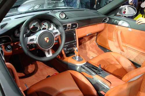 亚洲首发的保时捷911 Turbo Cabriolet成为展台上最耀眼的明星。这款车型继承了传奇跑车系列所具备的非凡性能和精巧设计。这款第七代911 Turbo的核心亮点是其排量为3.8升、最大输出功率达500 bhp的全新动力单元。在保时捷911 Turbo 35年的辉煌历史当中,这也是第一款全新搭载了直接燃油喷射以及带有可变几何涡轮保时捷专用涡轮增压器的发动机。另外,全新六缸双涡轮增压水平对置发动机也是第一次与七速保时捷双离合器变速箱(PDK)配合使用。