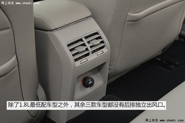 在舒适配置上面,顶配的车型的配置可谓傲视同级别,不仅带有加热和电动记忆,还带有按摩功能,显得十分高大上。不过顶配18.97万的售价也并不算很有竞争力。而中配的舒适配置上仅仅是少了真皮座椅和电动控制和加热等,空调同样为自动空调并带后排出风口。而低配车则要在中配车基础上变为手动空调并去掉后排出风口,而实际差价并不多,让低配显得不是很有吸引力。