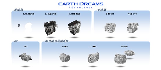 Honda “EARTH DREAMS TECHNOLOGY”计划力求构筑全新的动力及传动系统蓝图,包括由轻汽油、1.5L级汽油、1.8L级汽油、2.4L级汽油、3.5L V6汽油、1.6L级柴油组成的发动机系列;由轻量级CVT、小型CVT、中型CVT组成的变速器系列;EV系统以及适合小型、中型和大型车使用的三套混合动力系统。“2012 本田媒体大会”展示了其中大部分动力传动系统的最新技术与应用,包括1.5L级汽油、2.4L级汽油和1.6L级柴油发动机,小型CVT和中型CVT变速器,EV系统以及适合小型、中型和大型车使用的三套混合动力传动系统。