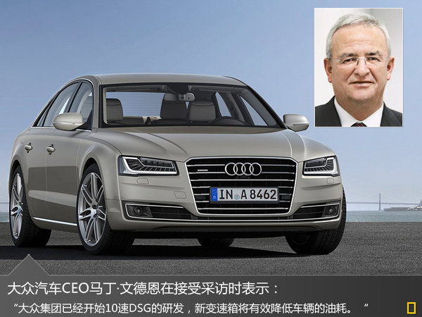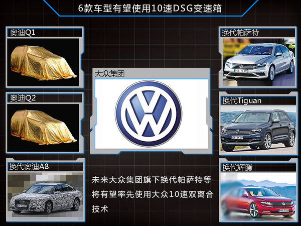 动力总成的升级已成为汽车研发的重要趋势,其中变速箱的发展势头在近几年非常迅速,克莱斯勒等车企已经逐渐开始普及9速变速箱。与此同时,一直将双离合视为核心的大众集团也计划研发更先进的变速箱技术,对此大众汽车总裁马丁·文德恩在接受采访时透露:“大众已经开始10速DSG的研发,新变速箱将有效降低车辆的油耗。”网通社在查阅相关资料后发现,未来大众集团旗下包括换代帕萨特、换代奥迪A8等6款车型均有望搭载该变速箱。
