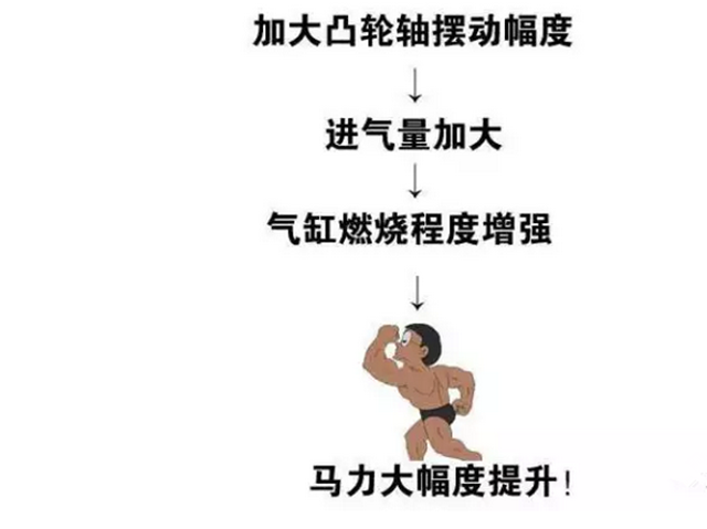 编辑就用简单的话给您讲解一下,其实本田装这个东西的主要思想就是加大凸轮轴摆动幅度,加大进气量,进气量大了气缸燃烧程度就会增强,马力便会大幅度提升。